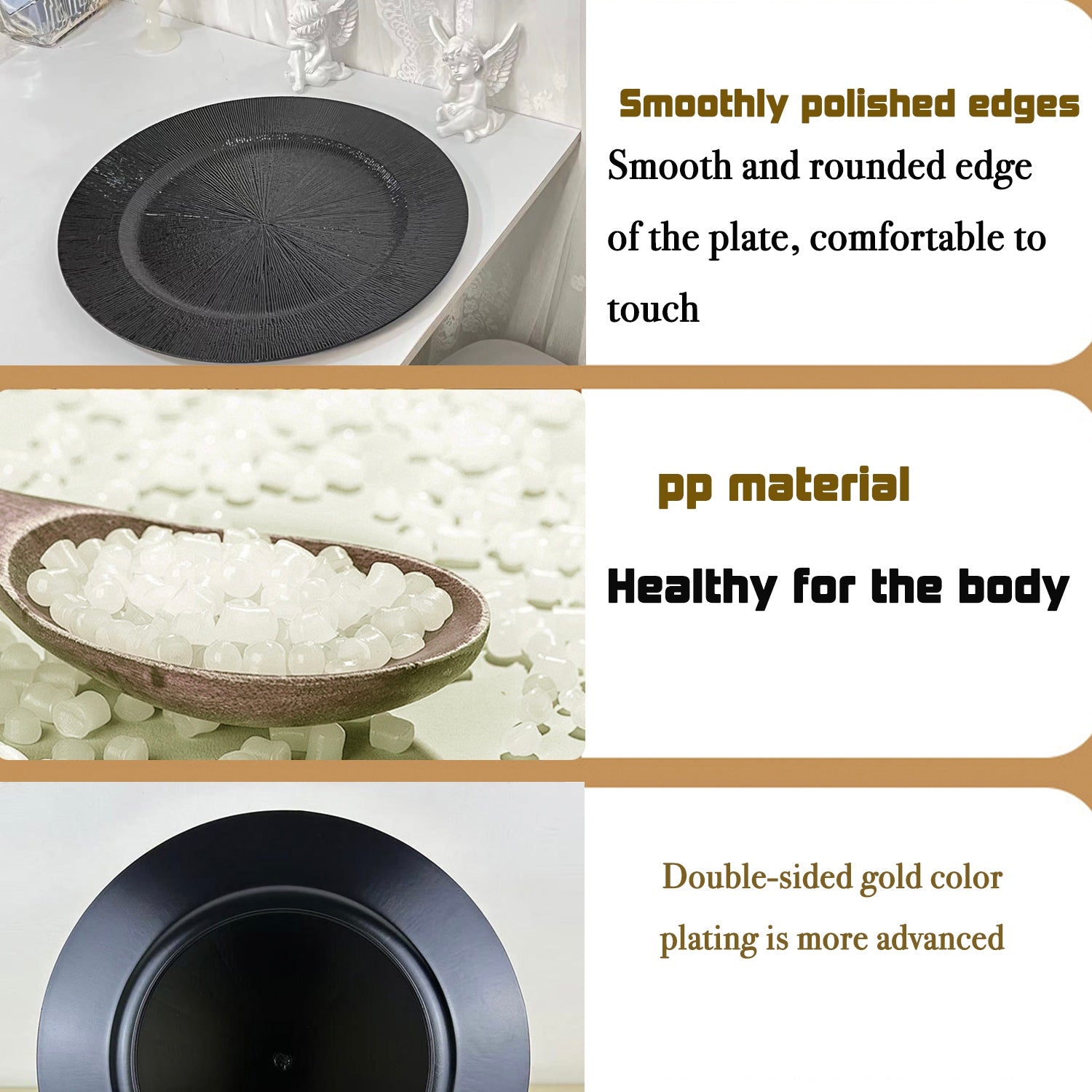 - 2025 Upgraded Premium Material: MDH Charger Plate is made of high quality plastic polypropylene, they are not only lightweight for easier transport but much more durable. Upgraded double-sided plating is more beautiful and durable than most similar products on the market. This is not a disposable tableware item, you can use it many times without losing the color or affecting the aesthetics, superior quality.
