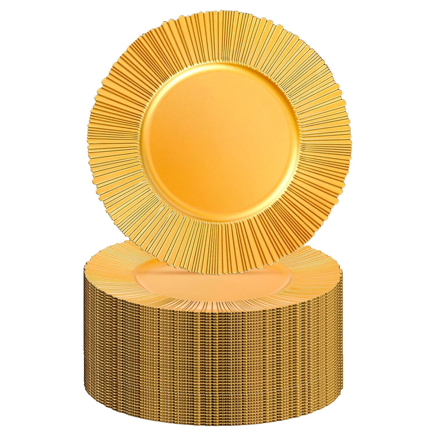 Charger Plates Bulk 13 Inch/Gold Charger Plate 100 pcs 13 in Round Matte Reef Plate Charger Ruffled Rim Dinner Charger Hollow out Flower Holde (100pcs, Gold)