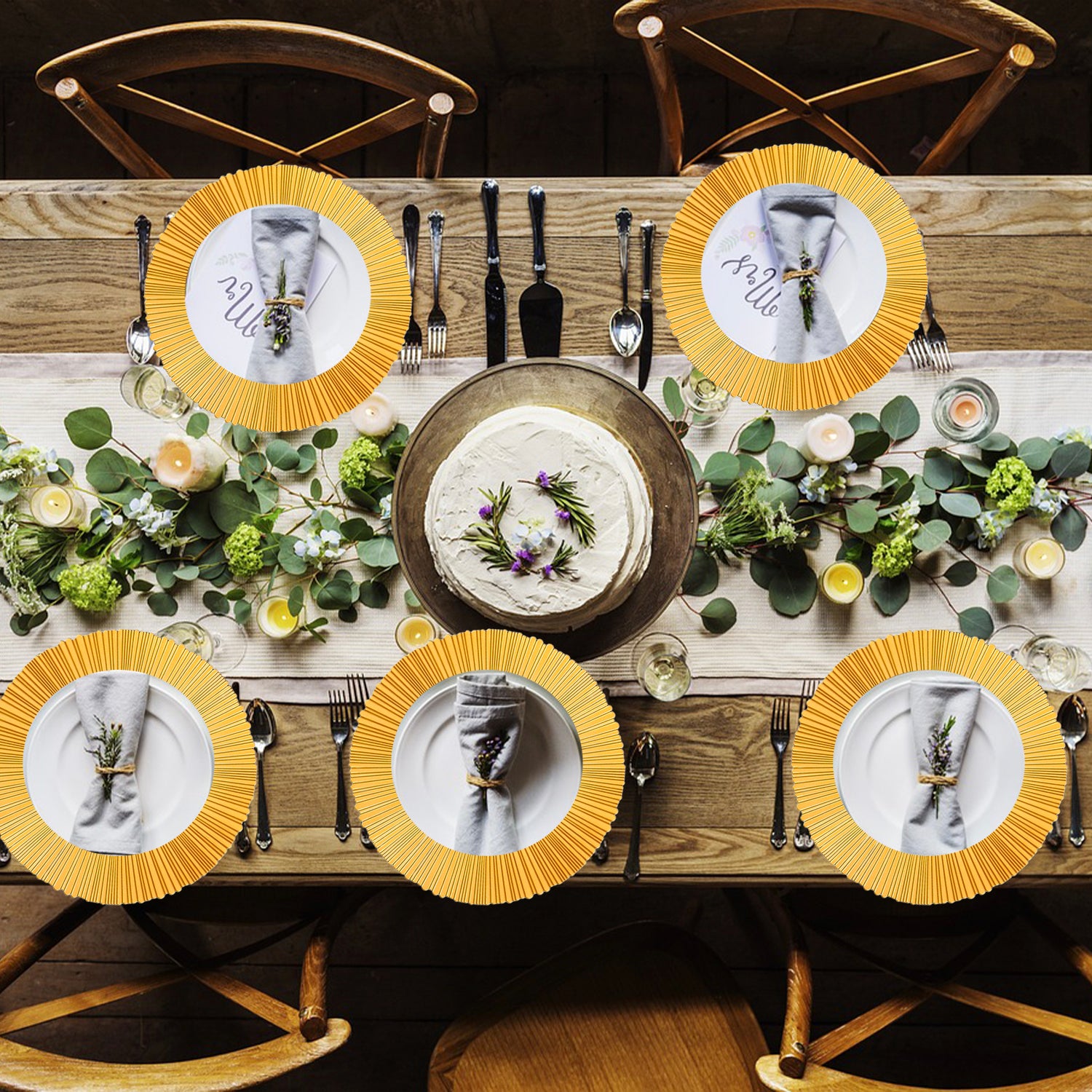 - Elegant Plates: These ruffled beauties are matte satin gold, adding a touch of glam and elegance to any event. Impress your guests for a beautiful brunch, Spring luncheon, Mothers Day, New Years party, garden party, birthday, and more! These gold colored dinner plate sets will add elegance to your table setting.
