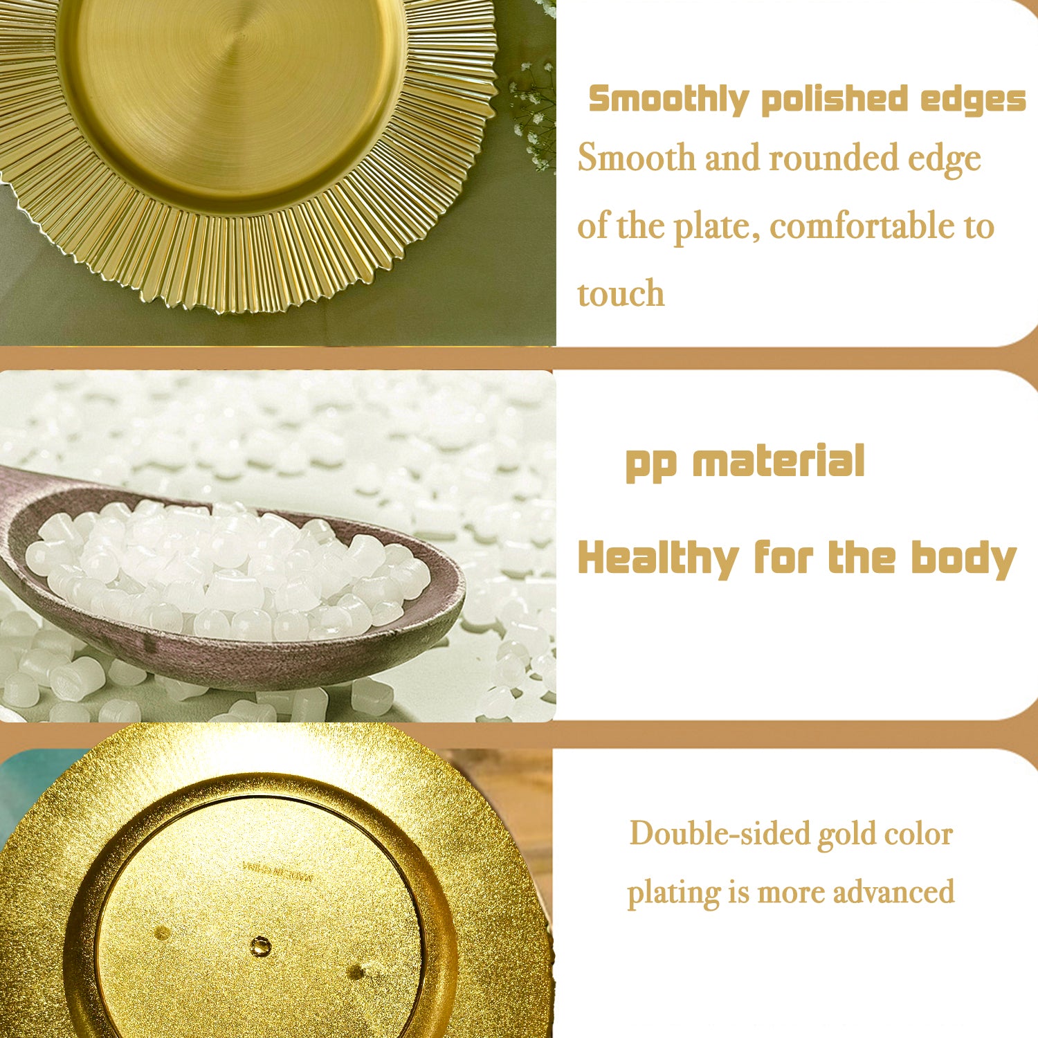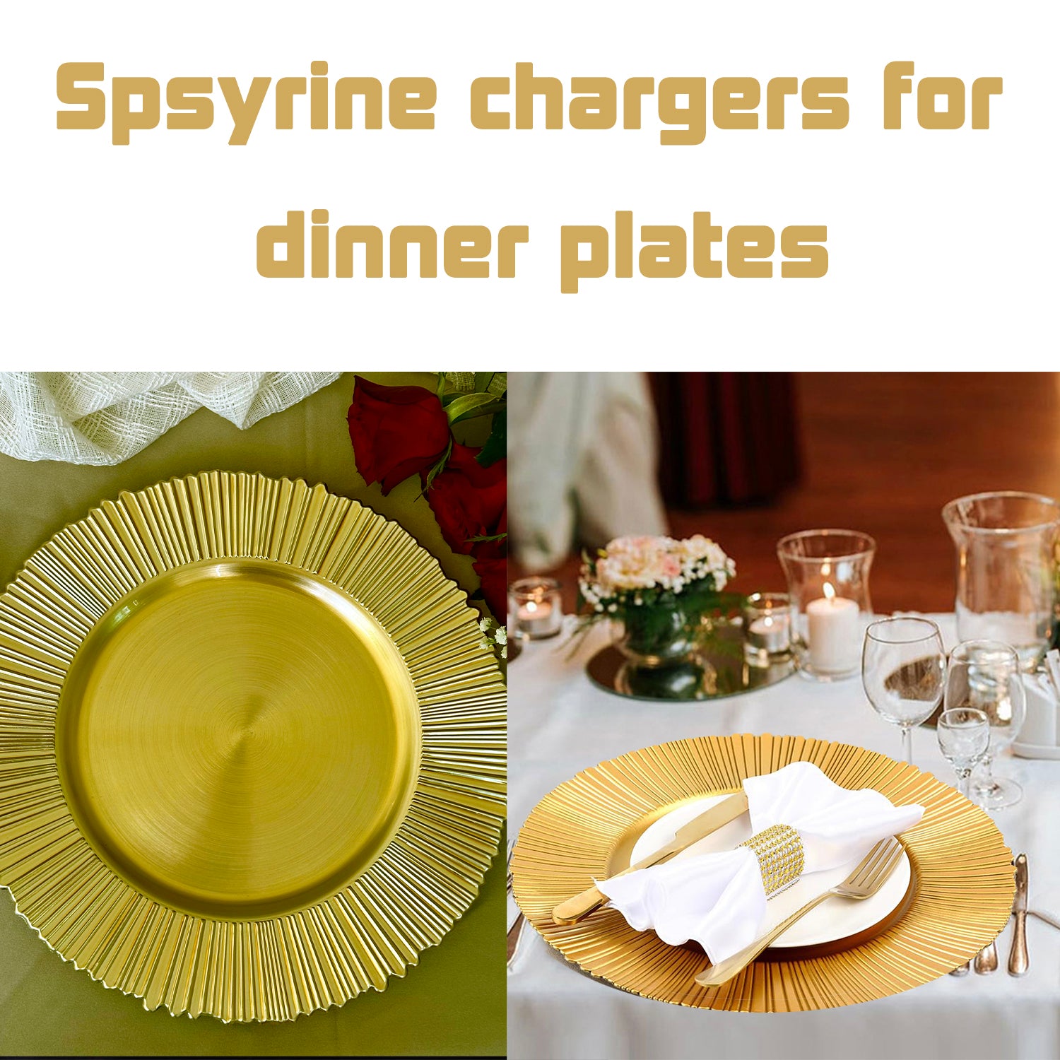 - Please note: These gold charger plates are not suitable for microwave or dishwasher, please wash in cold water and wipe with a dry cloth, take care of them for long time use; they are for decorative purposes only and cannot be used in direct contact with food; due to the difference in screen displays, the color may be slightly different from the picture; please make sure that you accept and like the color, and then double-check the size before ordering!